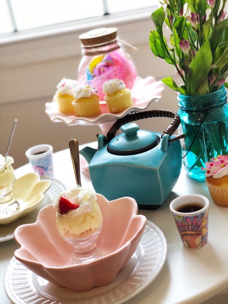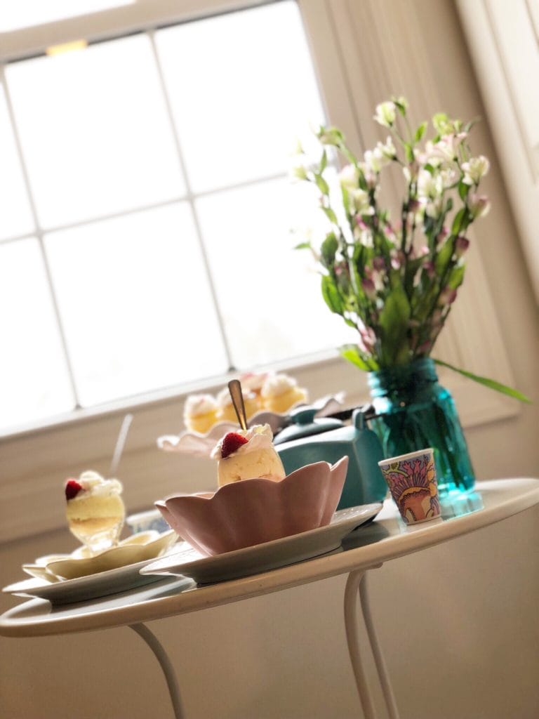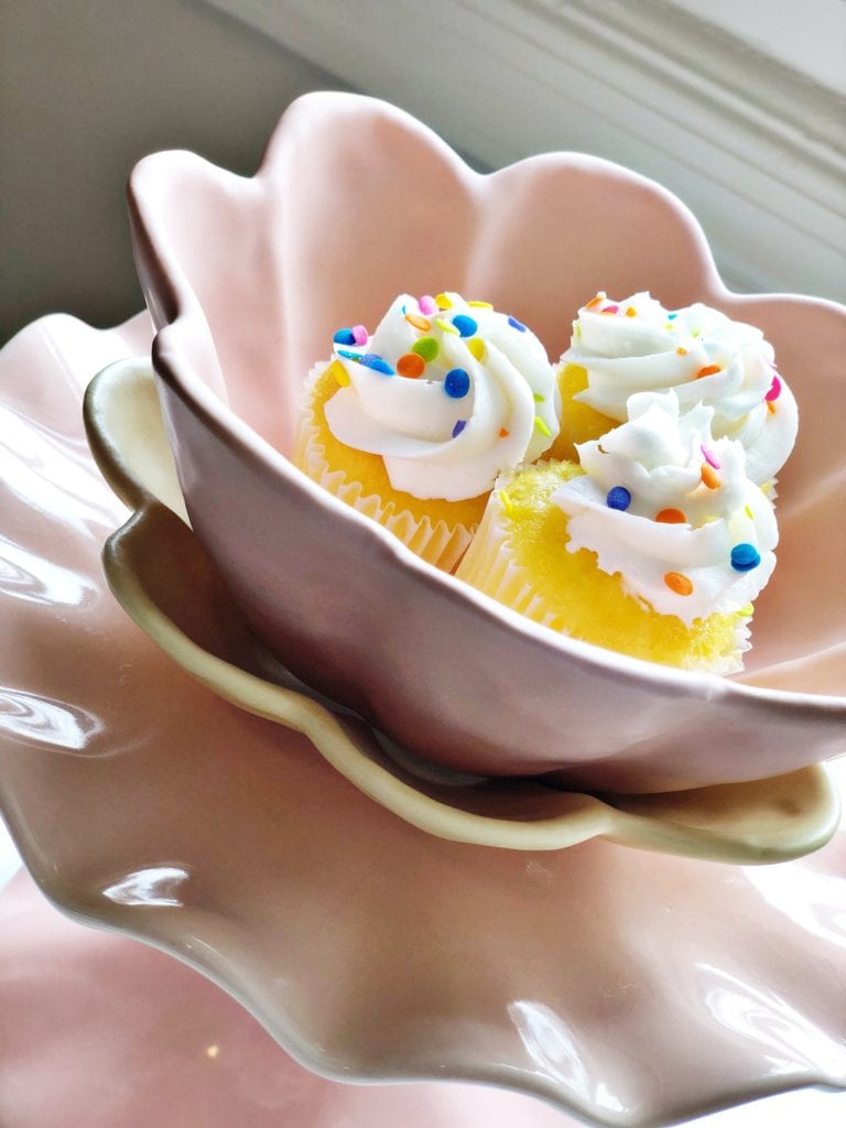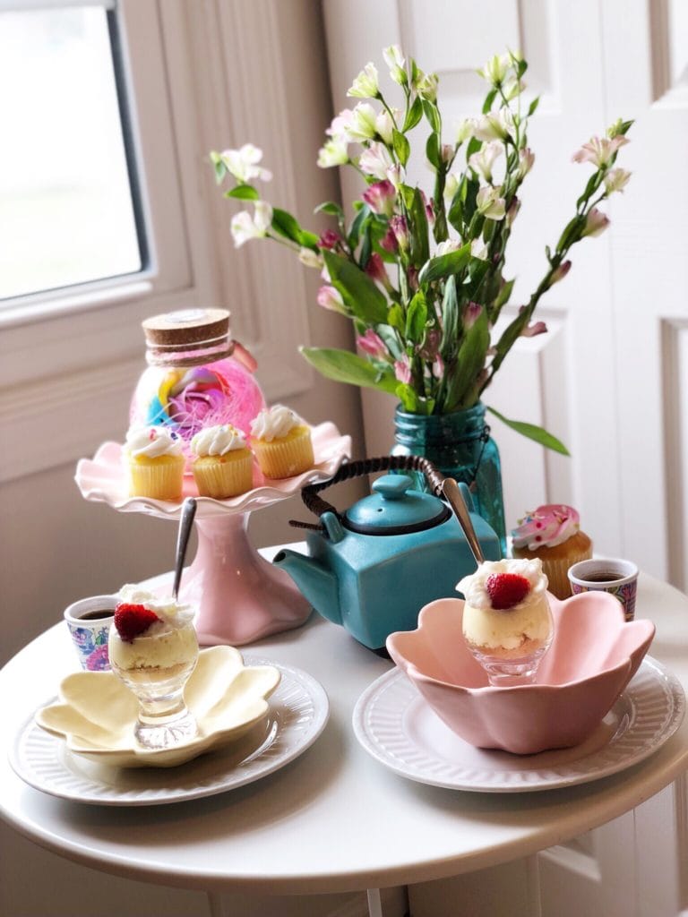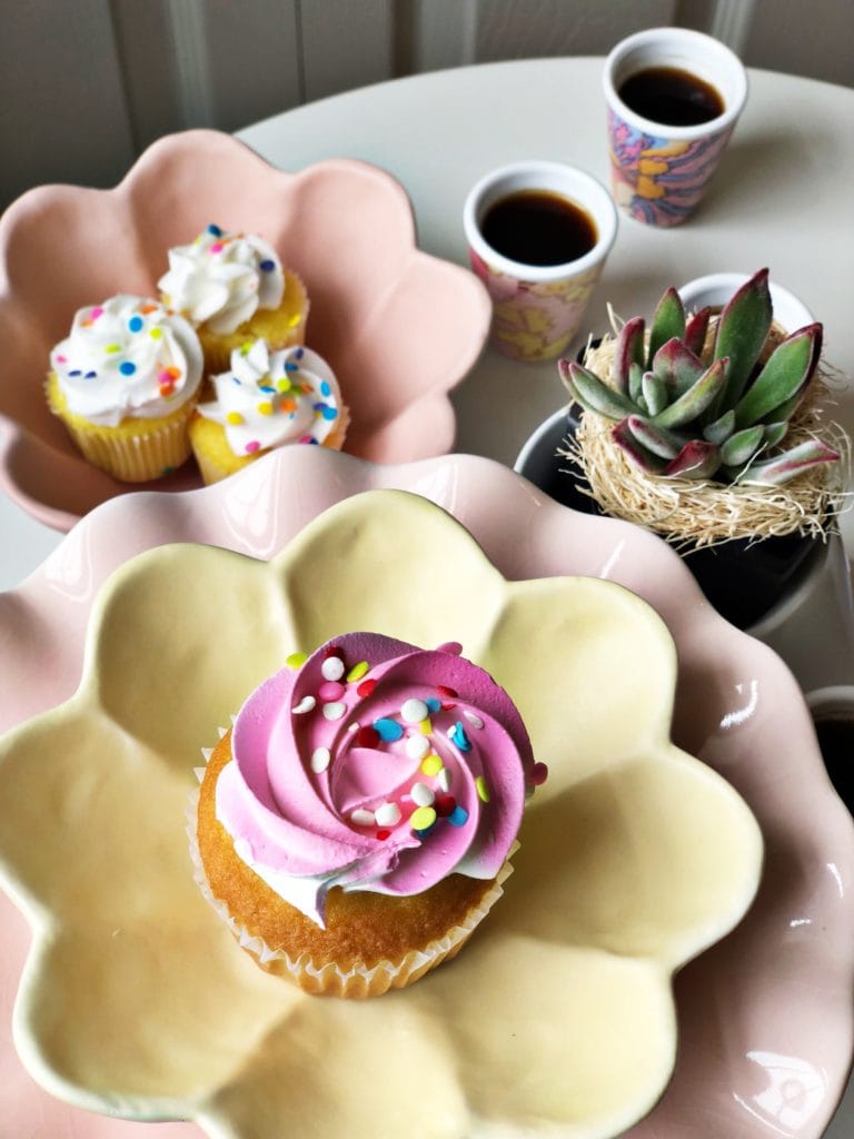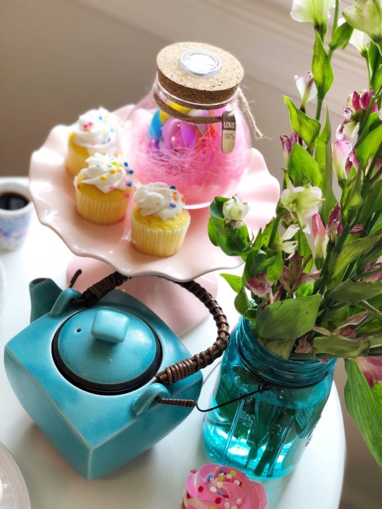 I had recently ordered a few fun new decor pieces, and I mixed them with a few things that I already had on hand. I whipped up a simple little dessert ahead of time (check out the simple recipe at the end of this post). Picked up a few cupcakes at the grocery store. Brewed a fresh pot of strong coffee (basically espresso). And turned a simple morning into a more memorable one with some much-needed time with my dear friend.